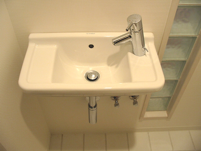 セラトレーディングのフィリップスタルクの手洗いです。角に丸みがあって全体の形は四角いという簡単なデザインなのになかなかない一品です。