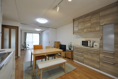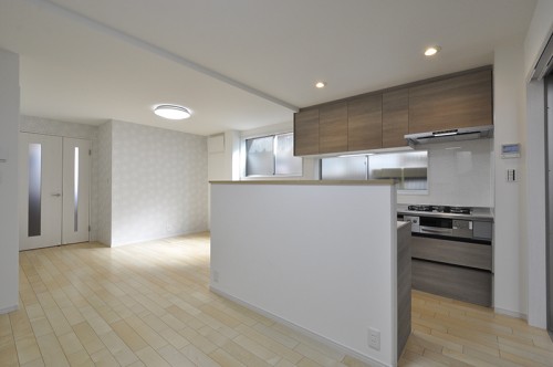 将来2世帯でお過ごしになることを見据え、LDKの隣にお母様の寝室を作りました。 天井までの3枚引き戸で仕切ることで、開ければワンルームのように広々と、閉めればプライベートが確保できる個室として使えます。