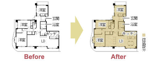 | リフォーム箇所 | キッチン、リビング、ダイニング、トイレ、浴室、洗面、玄関、洋室、物入 |