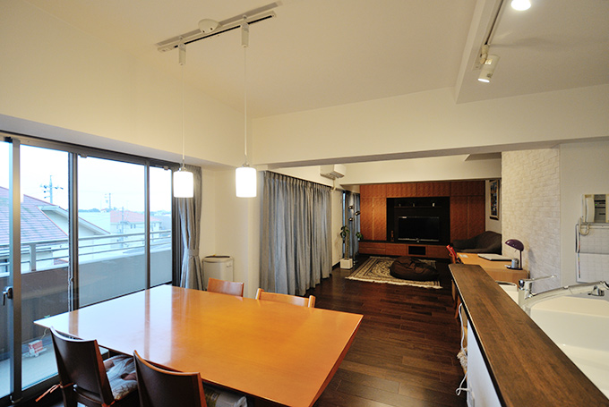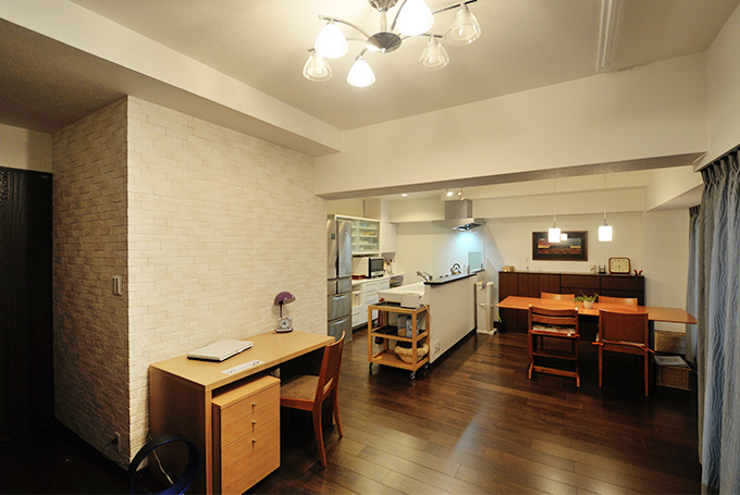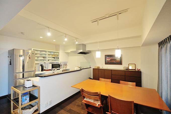 Ⅱ型キッチンで実現!シック&モダンな快適LDKリフォーム