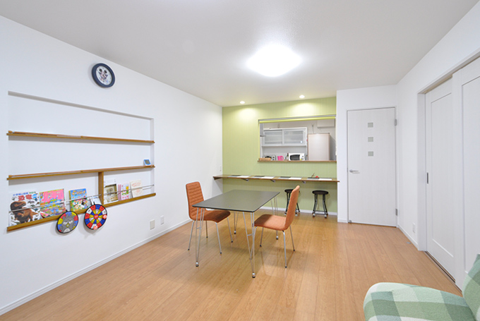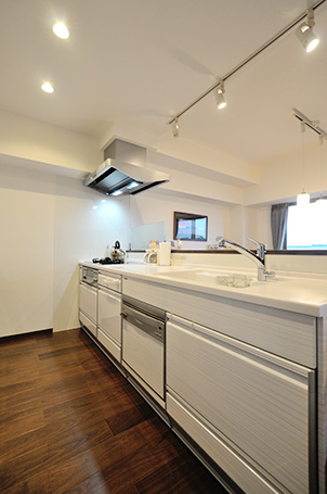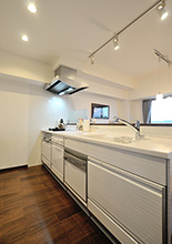 オープンで明るいキッチンと高級感のある内装へとリフォーム。各所の壁にエコカラットを使用することで、調湿や消臭効果も抜群な住まいに。