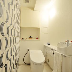 トイレはTOTO ネオレストを採用。タンクレスでスタイリッシュな印象に。超節水タイプで環境に優しく、「きれい除菌水」の力できれいが長持ちします。