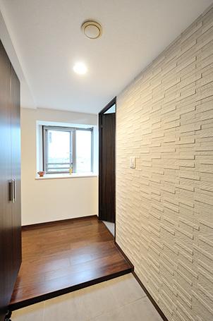 玄関ではエコカラットがお出迎え。 ビジュアル的な効果だけでなく、調湿・におい吸着作用もあります。