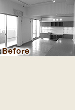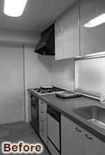 壁や釣戸棚を取り除き、オープンに生まれ変わったキッチン。