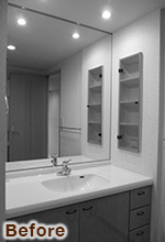 浴室の広さに比べて狭く、収納も少なかった洗面所。