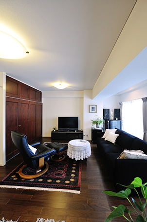 5年ほど前の大規模リフォームで造作した壁面収納と、お気に入りのアンティーク家具が馴染むインテリアにしたいとご相談をいただきました。