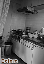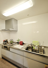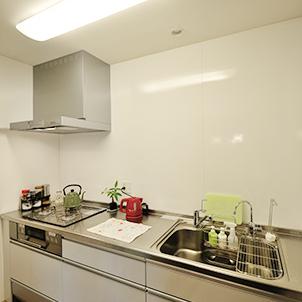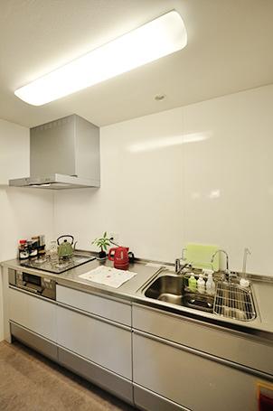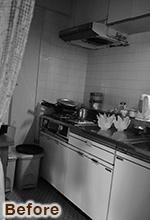 ほとんど使わない吊戸は撤去し、明るくお手入れしやすいシステムキッチンにリフォーム。不足しがちな収納もしっかりカバーしてくれます。フィルターレスのレンジフードだからお掃除も楽々です。