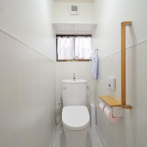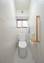 超節水洗浄のピュアレストEXを設置。汚れやすい腰壁は耐水性のパネルで、お手入れがしやすくなりました。