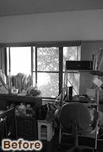 サッシの結露と雑然としたリビングにお悩みでしたので、断熱効果の高い二重サッシと造作収納カウンターをご提案。