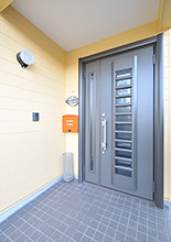 冬はドアから冷気が入り込み寒かった玄関は、断熱性の高い玄関ドアに交換。採風タイプなので、閉めておいても換気が出来ます。