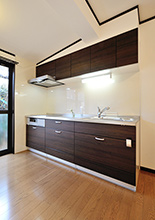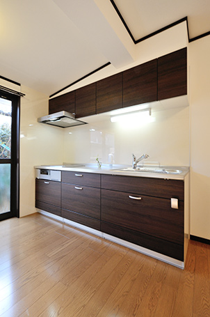 背面にダイニングテーブルがあると窮屈で使いにくかったキッチン。約4帖の増築で位置を移動し、ゆったりした調理スペースを確保。
