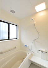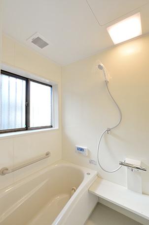お掃除がしやすいユニットバスに交換。将来に備えて手摺も取付けました。ペアガラスなので窓からの寒さもやわらぎます。