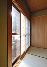 和室には障子風の和調二重サッシでコーディネート。従来の内障子より結露でカビたりすることもなく安心です。