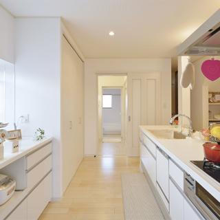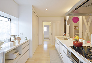 洗面室にいるお子様を見守れるよう、キッチンから一直線の動線に。