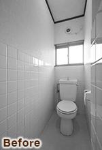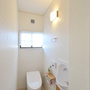 トイレは圧迫感のあるタイルを撤去し、節水型のタンクレスタイプに。 使いにくかったタンク部分の手洗いをやめ、埋込み式の手洗いを壁面に設置。「背の低い子供たちでも使いすい」と好評です。