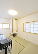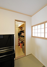 ゲストの宿泊時にも使える和室は、以前のキッチン側に移設。将来、お子様全員が2階に個室を持った場合、ここがご夫婦の寝室になっても良いように、納戸兼WICも完備しました。