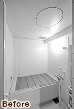 お風呂の幅はそのままに、なめらかな曲線状のバスタブ(ゆりかご浴槽)に取替え、足を伸ばして肩までつかれるように。