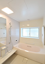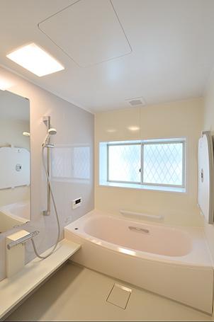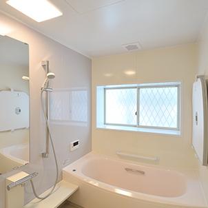お風呂はTOTOサザナHDシリーズ。水はけのよい「ほっカラリ床」や、カビがつきにくい「スッキリドア」などお掃除・お手入れが簡単になりました。