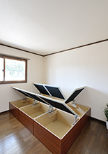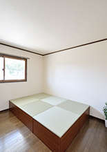 ちょっと腰を掛けたりするのに便利な畳が丘。ベッド代わりにも使えるよう布団が敷けるサイズにしました。