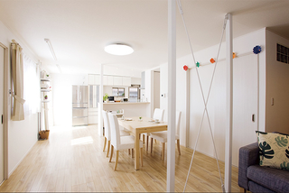 通路になっていた洋室と和室を取り込んで開放的なLDKに。構造上必要な柱は、おしゃれに白く塗装し空間に馴染ませました。断熱材とペアガラスで断熱性もアップ!床暖房をつければ冬の寒さも気になりません。