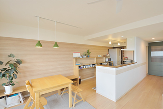 ご要望の「グリーンが似合うナチュラルな空間」は、棚やベンチなどをDIYで軽々と作るご主人と、観葉植物がお好きな奥様。2人の得意を活かすことで費用を抑えつつ、ほっこりと寛げるカフェのようなインテリアが完成。 どこにいても自然の温もりを感じられる住まいとなりました。
