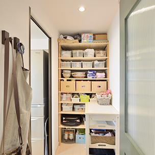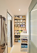 配管の関係で床の一部が上がってしまうスペースは、天井までフレキシブルに収納できるパントリーにして有効活用。