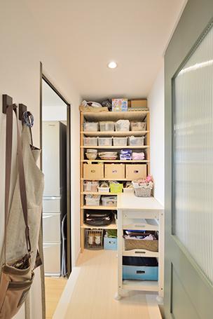 キッチンと廊下のどちらからでも入れるので、買い物帰りにキッチンをぐるっと回らなくてもすぐに荷物が置けて便利です。
