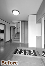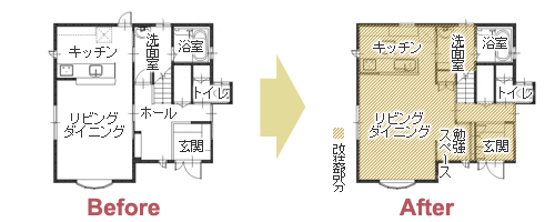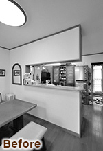 「朝でも電気をつけないと暗かった...」と気になっていたキッチンは、吊戸を撤去することで採光性と開放感がアップ!玄関ホールをリビングに取り込むことで、受験勉強に集中できるスペースも確保しました。