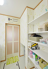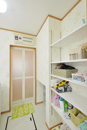 2WAYあった洗面室への入口は、キッチン横から入れる1WAYのみにして収納を確保。