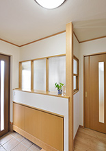 デスク上は玄関からの光が取り込めるガラスにして明るさと開放感をアップ!側面の小窓からは心地良い風が通り、勉強も集中できます。
