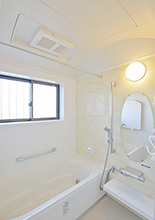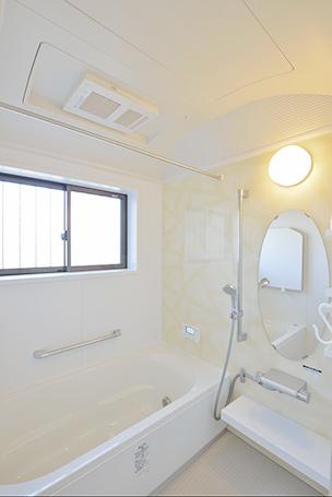 タイルの浴室からユニットバス(LIXILキレイユ)に。浴室暖房乾燥機の設置と窓をやや小さめにすることで、寒さ対策は万全です。