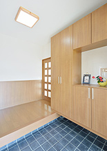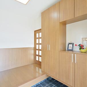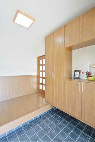 大容量の玄関収納は腰壁とコーディネート。