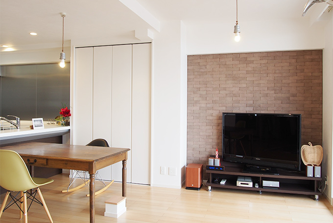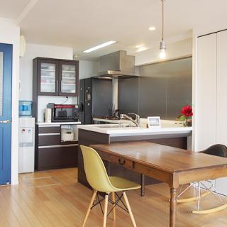 リノベーション前提で中古マンションを購入されたM様。 もともと広いLDKでしたが、より開放的なキッチンを希望し、間取り変更を検討。隣接する西洋室と繋げる計画もありましたが、耐力壁のため断念。