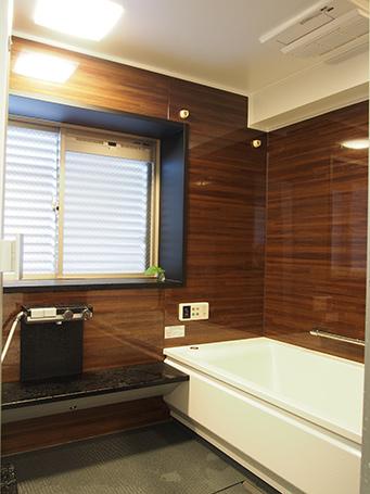 移設したことでマンションでは稀な窓のある自然の光で明るい浴室に。ユニットバスはダークブラウンで大人っぽい雰囲気のTOTOサザナを選択。1620サイズでゆったりくつろげる空間になっています。