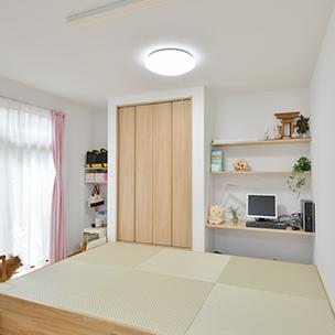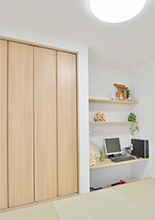 LDKには大容量のクローゼットを2箇所設置。ホールから入ってすぐのクローゼットは、掃除用具やゴルフバック、コート掛けに。畳コーナーのクローゼットにはベビー用品やリビングの細々したモノを。