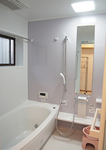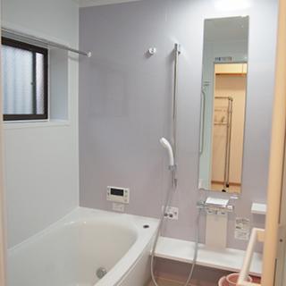 タイル貼りのお風呂から保温性能の高いシステムバスルーム(TOTO サザナ)に。冷めにくい浴槽なので家族6人が順番に入っても快適です。
