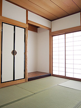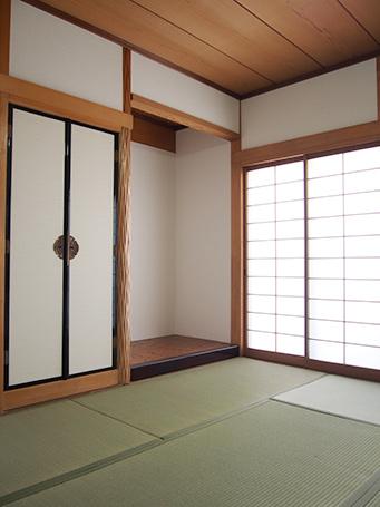 お茶を習って約10年の奥様。お稽古で使い慣れた和室は、畳の表替えと、じゅらく壁をクロスに貼替え内装のみ一新。