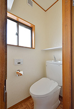 2Fトイレは超節水「4.8L洗浄」で家計にうれしいピュアレストEX。床は他の部屋と雰囲気を合わせて、木目調のクッションフロアに貼替えています。