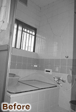経年劣化でタイルにひびが入っていた在来工法のお風呂は、暖かくお掃除もしやすいTOTOのユニットバス(サザナHD)に変更。