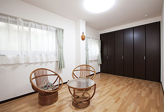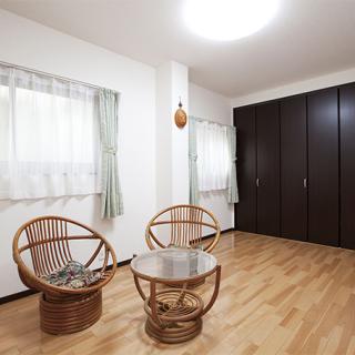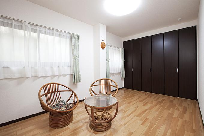 1Fの和室とエントランスホールの一部を取り込み、息子さん家族や親戚が遊びにきたときに使えるゲストルームに。納戸としても活用できるスペースです。