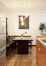 Ⅱ型キッチンで実現!シック&モダンな快適LDKリフォーム