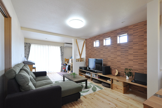 翌年4月には息子さんが小学校入学、7月には第二子のご出産予定。変化するライフスタイルに合わせて、家族が健やかに暮らせるよう、リビングは自然素材を使い温かみのあるナチュラルな雰囲気に。