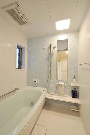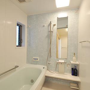 洗面室と合わせてスペースが広がった浴室は、タイル張りからユニットバスに。保温性の高いTOTO(サザナ)に浴室暖房機も設置し、いつも温かバスタイムが楽しめます。「これで家族が増えても安心です」