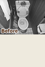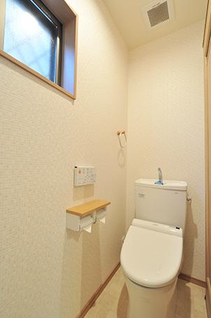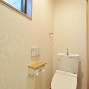 場所を移動し壁・床・天井のクロスを白色のものに変え、明るく生まれ変わったトイレ。便器はお手入れが簡単で人気のTOTO(ピュアレスト)。ドアは引き戸に変え使い勝手もアップ!