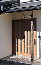 耐震面の不安から屋根を瓦よりも軽いガルバニウム鋼板に葺替え。外壁は新しく塗装し一部トタンも張り替えています。玄関引き戸はモダン和風なものに一新。