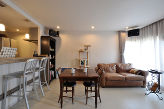 物件は外観のレンガ貼りのヴィンテージ感や未改装であること、立地のよさが気に入り購入しました。内装は、こだわり家具やそちらに合わせ新調するカーテンとの相性やバランスを考え、奥さまがトータルコーディネート。落ち着いた色味を基調とした、クールでスタイリッシュな雰囲気の空間です。
