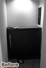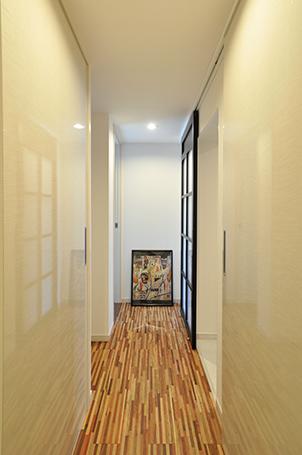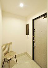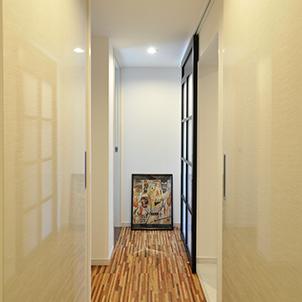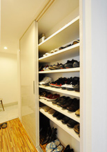 収納とかまちを撤去し、広々とした玄関。ブーツやスニーカーなど下足は、廊下面にシュークロークを作ることで、スッキリと収納できます。