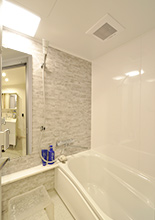タイル貼りのお風呂からお手入れが簡単なユニットバス(TOTO/マンションリモデルWFシリーズ)に。浴槽も洗い場も広がり、ゆったりリラックスできます。