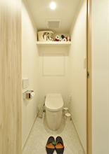 トイレはタンクレスタイプのTOTO/ネオレストDHに取替え。壁紙は洗面室と合わせて、シンプルな白地のクロスにしています。