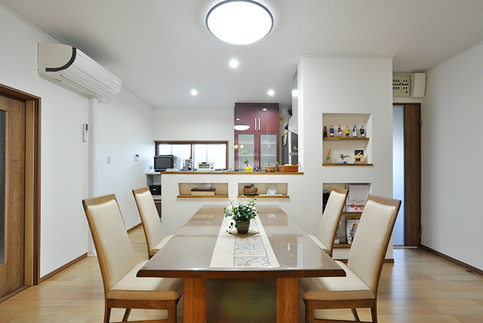 将来に備えてバリアフリーで生活できる住まいへとリフォームをされたK様。廊下を隔てて点在していたキッチンやリビング、洗面室は、廊下をなくし段差もすべて解消。一体感が増し、家族の気配が感じられる住まいに。以前から気になっていた寒さ対策には、二重サッシ(インプラス)やペアガラスで家の断熱性能を上げ対応。